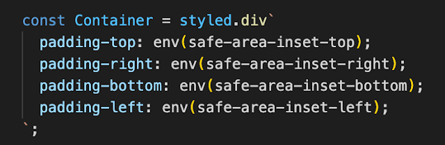 CSS 속성인 env()를 사용하여 상단 노치, 하단 indicator bar, 가로 모드 시 좌우 잘리게되는 부분의 값을 설정할 수 있어 위에서 언급한 문제점들을 모두 해결할 수 있다.